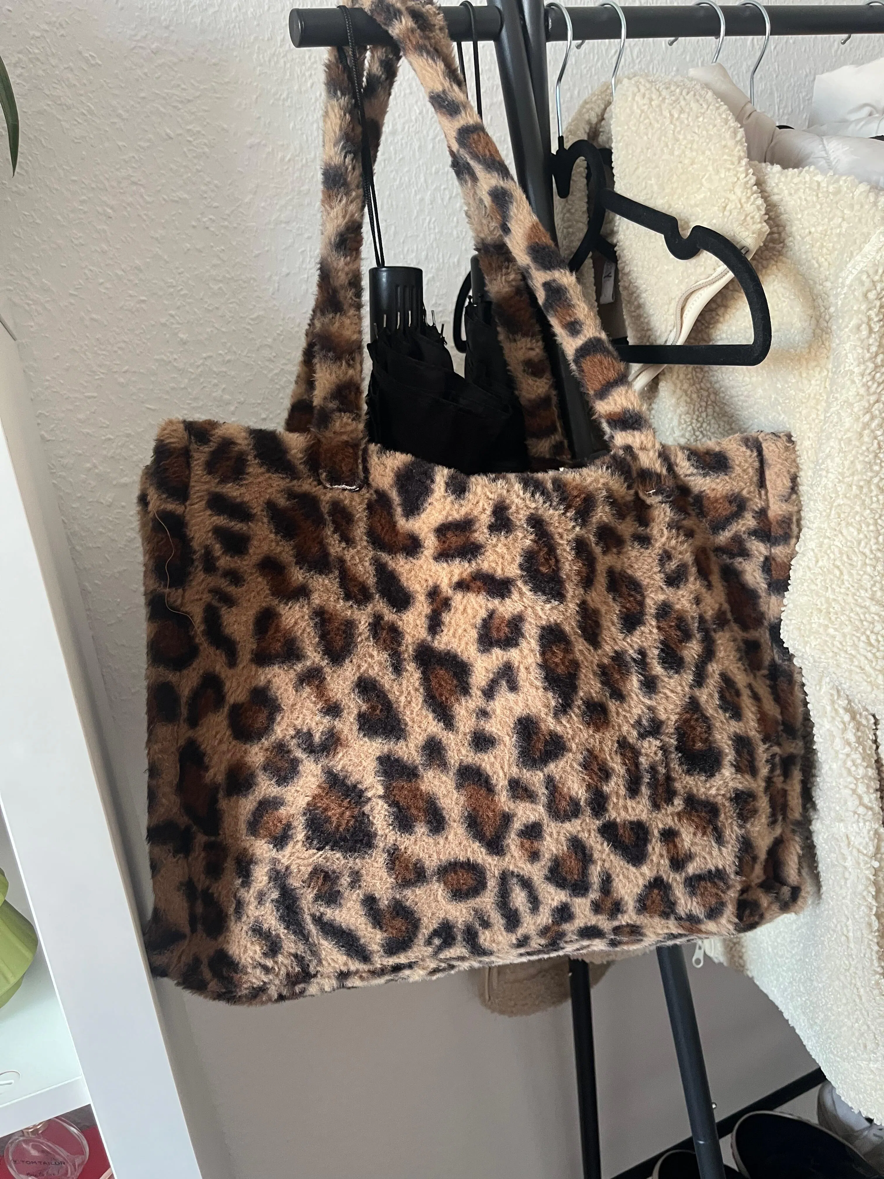 Diese geräumige flauschige Tasche bietet viel Platz für alles, was du im Alltag brauchst. Dank der praktischen Innenfächer an den Seiten bleibt alles organisiert, während der Reißverschluss deine Sachen sicher verstaut.